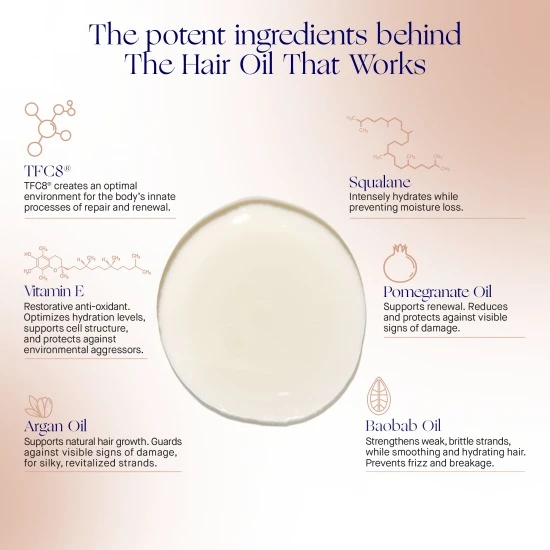 Augustinus Bader The Hair Oil fuses luxury with efficacy to optimize the look and feel of your hair. Inspired by over 30 years of scientific innovation, this ultra-restorative elixir immediately delivers a concentrated dose of nutrition directly to the hair shaft, for glass-like shine and lasting protection. Essential vitamins and innovative technology work together to actively reduce breakage, deeply condition, seal split ends, and guard against damage from daily stressorsu2014from heat styling to environmental pollutants. Lightweight, fast-absorbing, and never greasy.