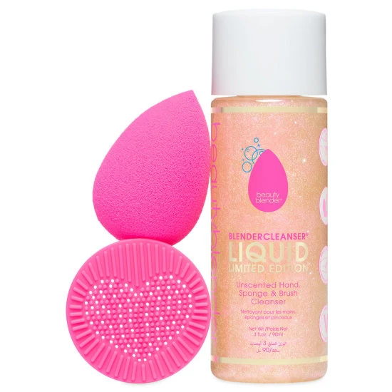Almost too sweet to believe, this 3-piece value set includes all the essentials you need for a flawless blend. The super-soft, exclusive, latex-free foam quickly blends makeup for an easy application and skin-like finish. The liquid Blendercleanser allows you to soak blenders and bristles for a pristine clean while the silicone scrub mat nixes stubborn stains.