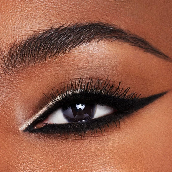 - Apply the matte black shade along the top lash line to create your desired shape.