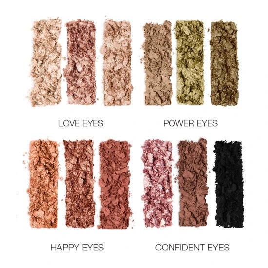 Choose your look: Love Eyes, Power Eyes, Happy Eyes, Confident Eyes. Apply the Prime shade over the entire eyelid. Then, blend the Enhance shade from the outer corner into the centre of the eyelid and crease. Next, apply the Smoke shade along the top and bottom lash lines and blend into the outer corner and crease. Finish with Pillow Talk Push-Up Lashes Mascara.