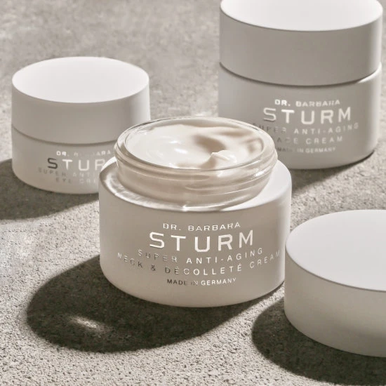 The newest addition to the Super Anti-Aging Collection from Dr. Barbara Sturm, this neck and du00e9colletu00e9 cream reveals more even toned, smooth and youthful-looking skin with regular use. Often neglected areas of the skin, the neck and du00e9colletu00e9 age more quickly than the rest of the face and body. The skin here contains less sebaceous glands and therefore tends to be thinner, meaning that it is more prone to dehydration, wrinkles, fine lines, loss of elasticity, visible oil glands, telangiectasias (small dilated blood vessels, also known as spider veins), and hypo- and hyperpigmentation and crepiness. This formula contains a high concentration of potent ingredients that target the specific skin needs of the neck and du00e9colletu00e9.