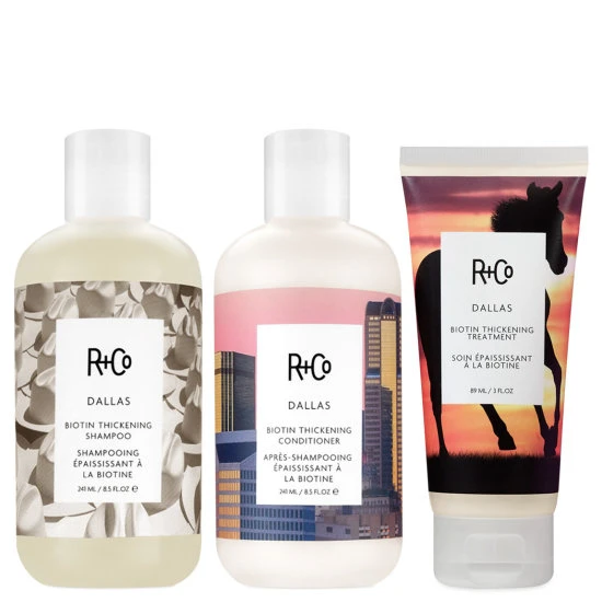 The High Heaves Kit includes Dallas Biotin Thickening Shampoo, Conditioner and the new Dallas Biotin Thickening Treatment to take your strands to new heights while imparting shine. Itu2019s heavenly hair in three simple steps.