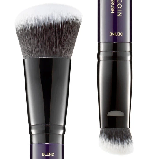 - The “Define” end is a compact, dense angled brush to place and blend contour on smaller areas of the face with control.