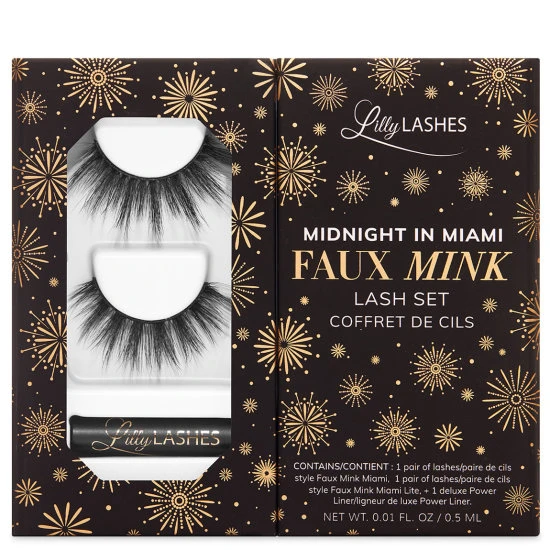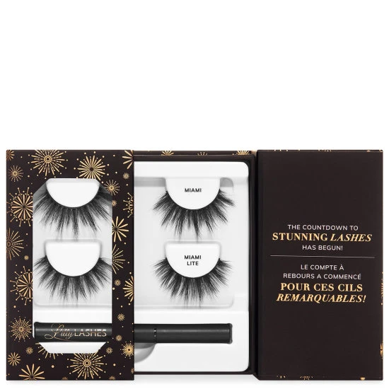 Power through holiday parties with two of your favorite lash styles: Miami and Miami Lite. These ultra-wispy fan favorites add length, volume, and seduction to any look. Includes Lilly Lashes Power Liner, the breakthrough jet-black eyeliner that doubles as an extra-tacky adhesive for quick & easy lash application u2013 no touch-ups needed! Your most glam holiday looks will last well past Midnight with this limited time lash kit!