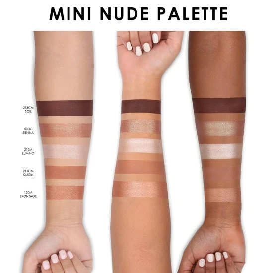 All neutral shades in a mini size palette including 2 metallics, 2 mattes & 1 duo chrome. This eyeshadow palette is very user-friendly and the color scheme allows you to create a whole day or night eye makeup look.