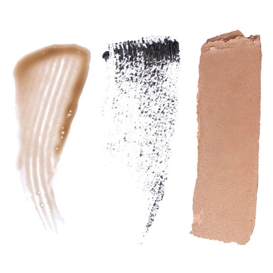 The Nude Eye, Brow & Lashes Kit is a limited edition 3-piece eye set containing everything you need for healthy groomed brows and natural, full, feathery lashes as well as a luminous nude eyeshadow pencil that doubles as a brightening eyeliner to make your eyes pop. These eye makeup must-haves come stored in a convenient black tin with a mirror for quick and easy brow, mascara, and eyeshadow touch-ups on the go!