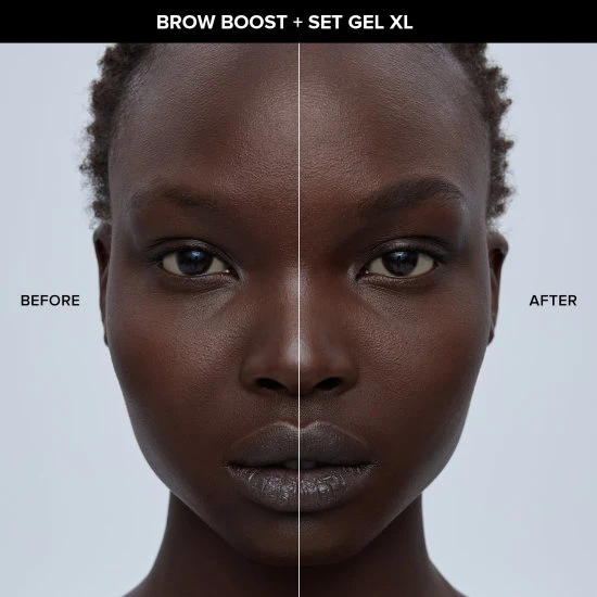 - Brow Boost + Set Gel XL (full size): A long wearing, medium-hold and clear volumizing brow gel formulated in Korea that grooms and sets your brows in place. 5% peptide complex factors volumize brows with an up to +59% increase in brow hair density after only four weeks in a consumer test study.