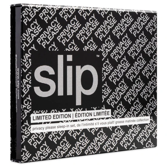 Sleeping in has never felt (or looked) better than with Slipu2019s Privacy Please Sleep In Set. The limited edition set includes a 100% slipsilku2122 eye mask thoughtfully designed with 100% mulberry silk to reduce friction, stretching, and tugging on delicate facial skin. Paired with a matching door hanger with crystal embellishmentu2014perfectly festive for the holiday season. Only available for a limited time.
