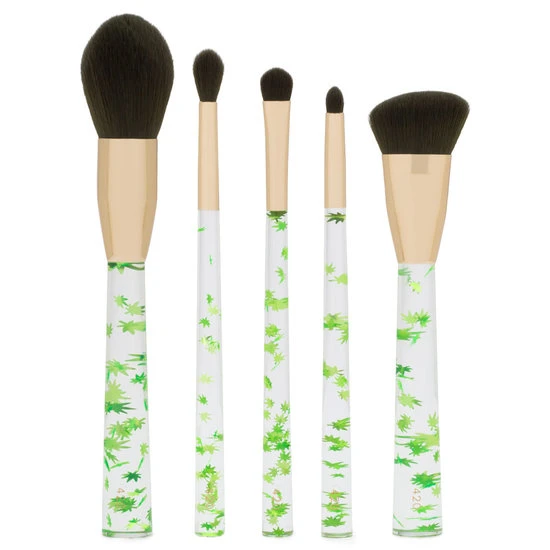 Celebrate 4/20 in style with this limited edition set of five luxury, cruelty-free brushes and custom zip pouch. Perfect for any cannabis enthusiast, The Cannabis Collection features silky green vegan bristles and lucite handles with glimmering, cannabis-shaped glitter.