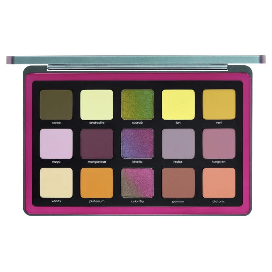 Create multidimensional, futuristic eye looks with Natasha Denonau2019s Triochrome Palette. This limited-edition eye shadow palette features three multichrome shades with a shifting, holographic finishu2014plus 12 complementary matte shades for easy mixing and matching. These unique hues are perfect for creating a bold statement or a wearable everyday look with a pop of color.