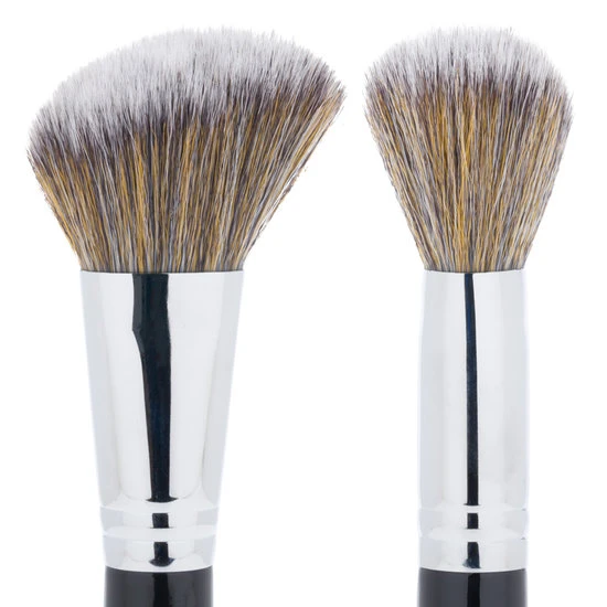 This angled cheek brush makes it easy to apply blush and contour products with a smooth, even finish. The silky-soft synthetic bristles conform to the curves of the face to carve and define cheekbones.