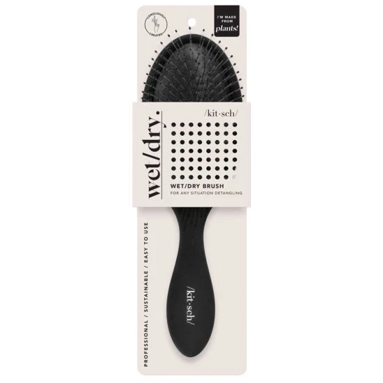 The Kitsch Wet/Dry Brush is the perfect hair tool for everyday hair care. Use this brush to smooth out knots & disperse products evenly throughout wet or dry hair. Its thin flexible bristles comb through fragile hair without snagging or breaking hair.